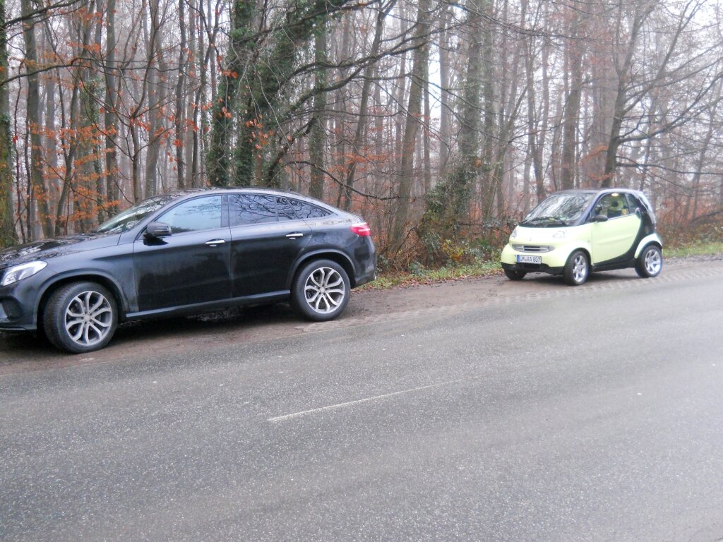 Sehe ich kein Problem. Beim GLE und beim Anorak wird die Tridion die Energie in die Knautschzonen der anderen Fahrzeuge weitergeben, das ist das Konzept des Smart.