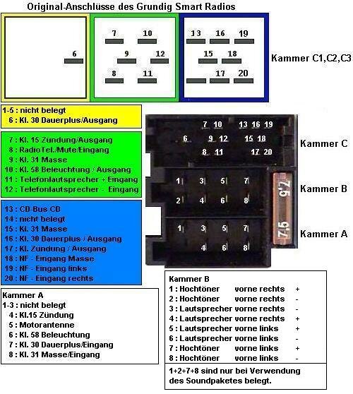 Zur Versorgung des Radios liegen an dem Stecker der Kammer A Zündungsplus und Dauerplus an.