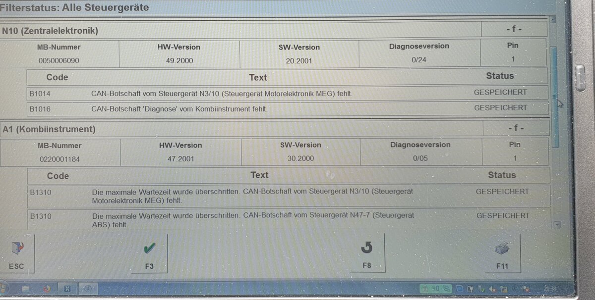 450-3 Geschrieben am 8. September 2020 Sieht im Video aus, als würde das MEG neu starten. Vielleicht ein Wackler in der Stromversorgung? Wurde der Fehlerspeicher vorher mal gelöscht oder sind das eventuell ganz alte Meldungen? Der B1016 steht z.B. auch manchmal "einfach so" drin. Diesen Beitrag teilen Link zum Beitrag Auf anderen Seiten teilen