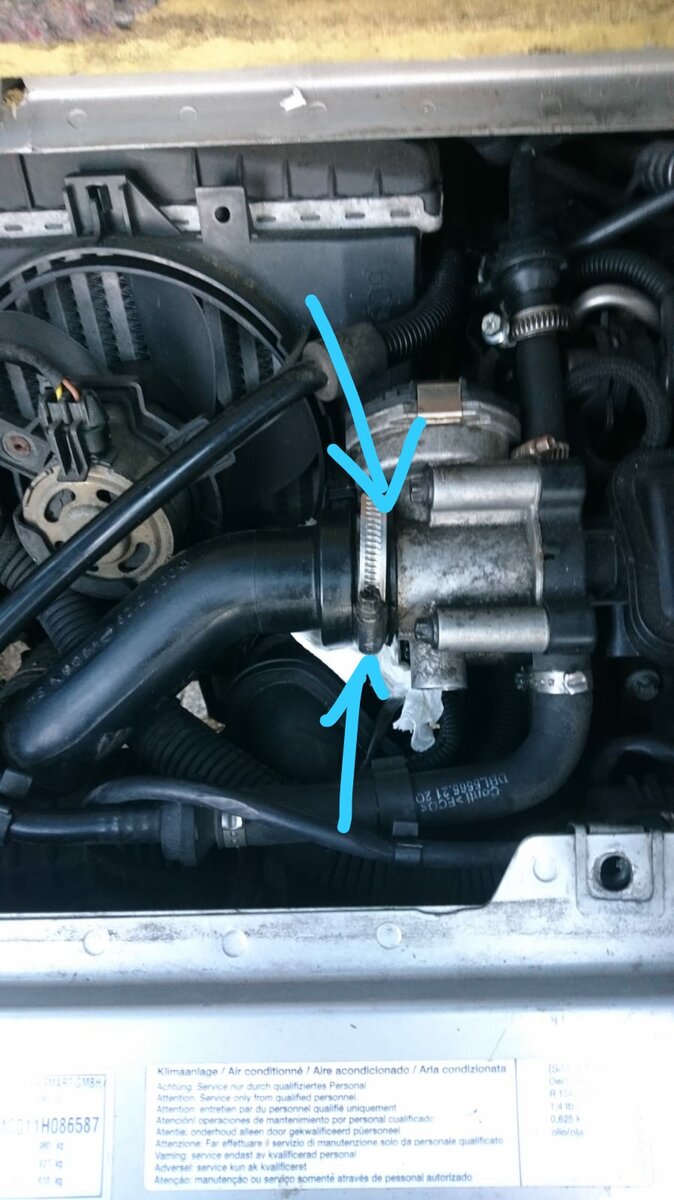 Das Teil rechts von dieser Zuleitung ist die elektrische Drosselklappe und noch weiter rechts befindet sich dann die Ansaugbrücke.