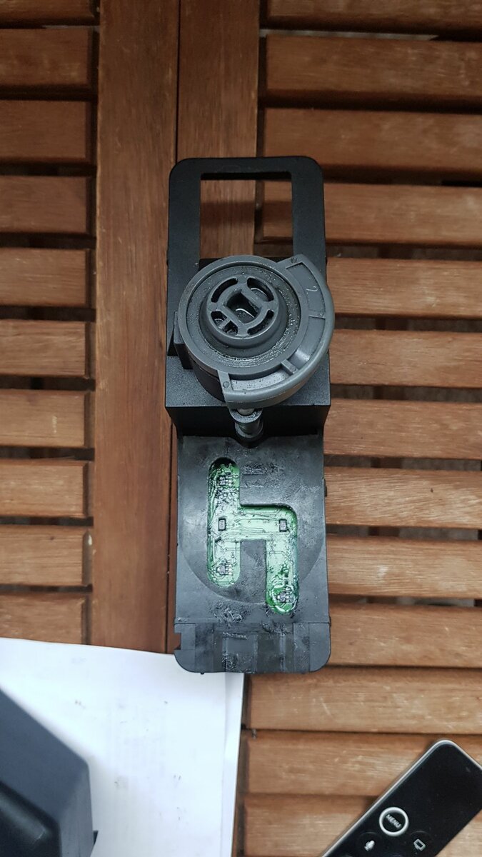 Die Platine habe ich heute auch ausgebaut, ist vom Prinzip auch nicht kompliziert. Mit einem 1 mm Bohrer habe ich vorgebohrt und dann mit einem 10 mm Bohrer die verbliebenen Plastik Reste entfernt. Wenn die Platine zu retten ist (defektes Bauteil ersetzt) dann kann die Platine mit ein paar Schrauben wieder gut an Ort und Stelle befestigt werden. Wenn es gelungen ist gebe ich Bescheid.