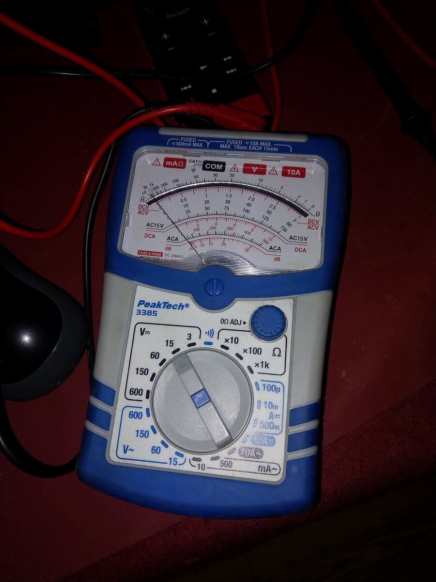 Gast stuhlfahrer Geschrieben am 1. Februar 2022 vor 6 Minuten schrieb Ahnungslos: Wenn man ohmsch Widerstände misst, dann erfolgt dies ja ebenfalls über den mA Eingang, deshalb steht ja dort das Ohmzeichen mit dran. Und wenn man dann die beiden Messspitzen direkt zusammen hält, dann muß der Zeiger maximal ausschlagen, weil das dann ja ein sehr geringer Widerstand ist. Auch an der Skalierung der Ohmskala erkennbar. Nee, da bewegt sich nix. Und jetzt wo du das mit der Wiederstandsmessung erwähnst, erinnere ich mich das ich vor langer Zeit eine Wiederstandsmessung machen wollte und das Messgerät da schon nichts angezeigt hatte. Aber da ich keine Ahnung davon habe, war es auch gut damit. Diesen Beitrag teilen Link zum Beitrag Auf anderen Seiten teilen