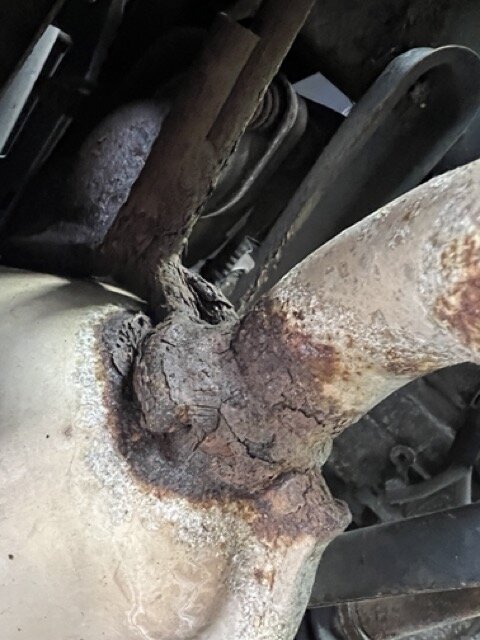 Den Auspuff würde ich erneuern. Das Loch im Integralträger muß geschweißt werden. Wobei mich mal interessieren würde, ob das Schweißen am Integralträger nach TÜV Meinung zulässig ist.