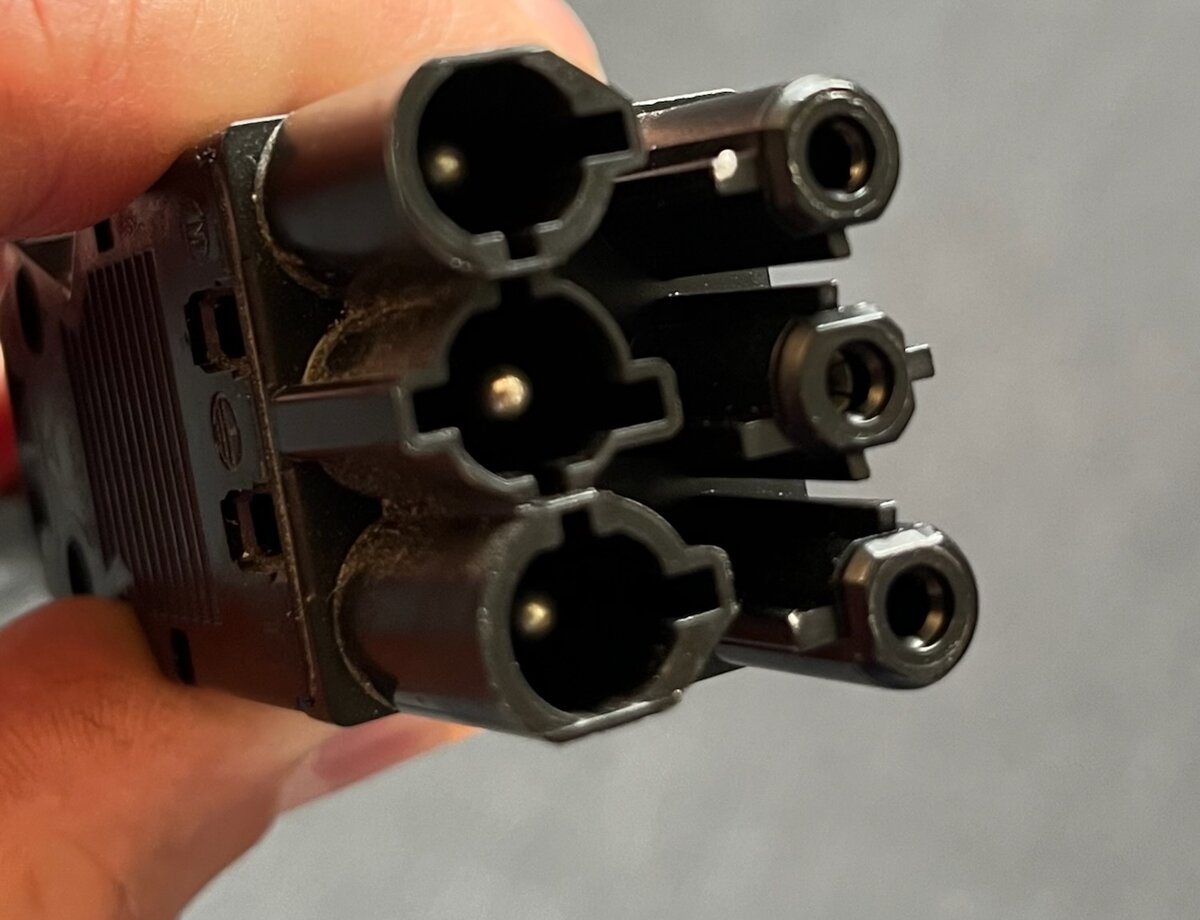 da ich keine Anhängersteckdose verbauen wollte und auch sonst keine sichtbaren Veränderungen wollte habe ich eine "Steckerlösung" gewählt. Die Kabel mit den Steckern die zu einen Steckdosensystem von Bürotischen gehören lagen zuhauf in der Schrottkiste. Die Teile sind verpolungssicher und können auch genug Strom ab und kosten nix. 😇