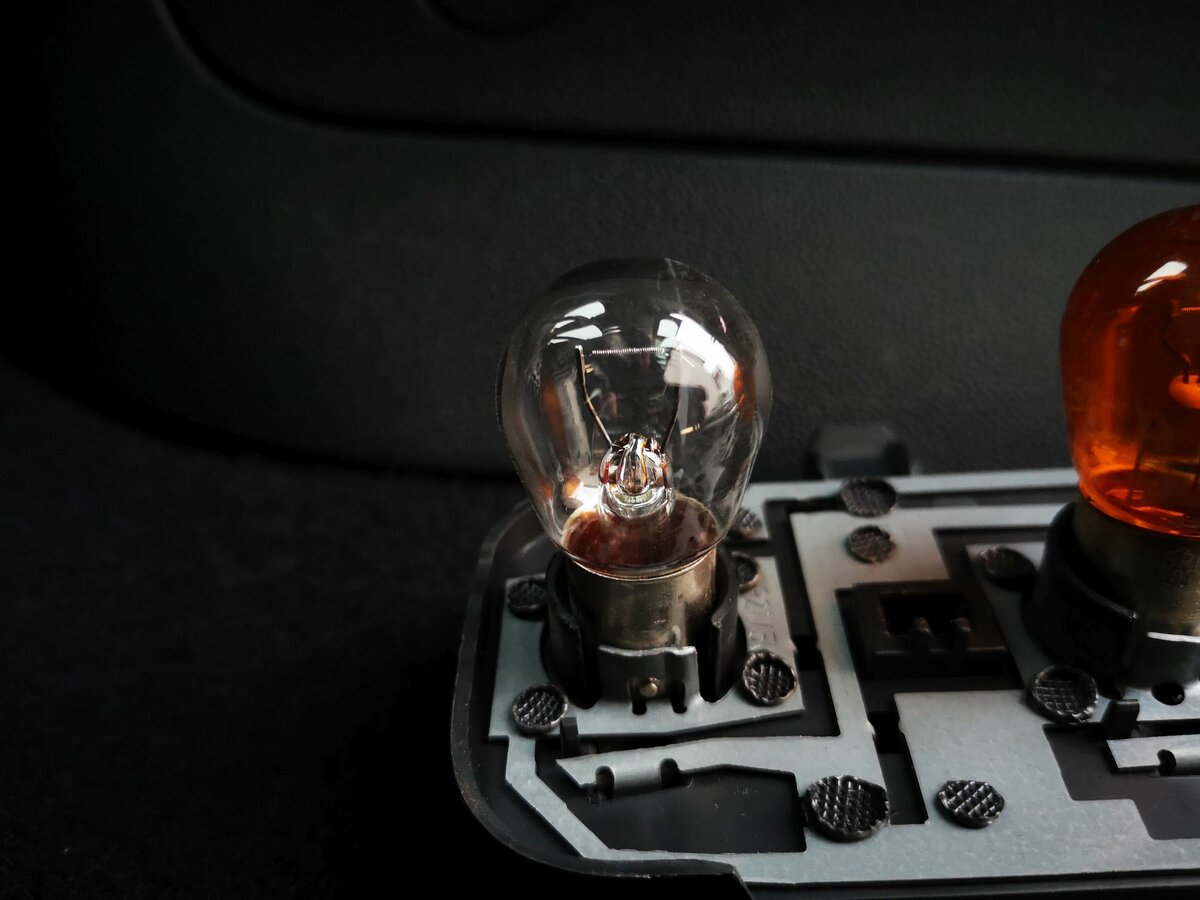 Das sieht für mich so aus, als ob die Zweifaden-Glühbirne durchgebrannt wäre und dann hat einer einfach die Einfaden-Glühbirne aus dem Rückfahrscheinwerfer entnommen und dort oben rein gestopft!