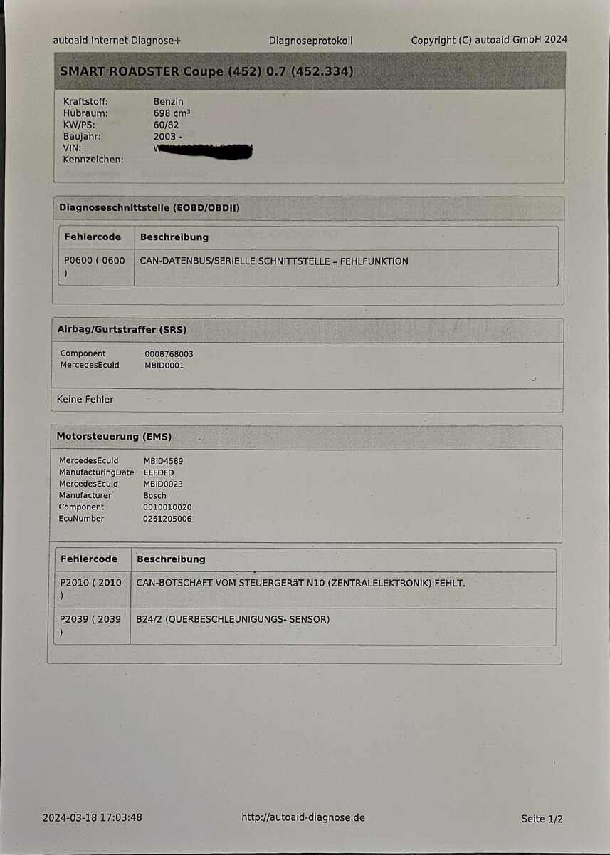 Der Smart 452 Roadster Coupé meines Schwiegervaters Startet nicht mehr und das Display im KI bleibt dunkel, nur die Airbag-Lampe leuchtet. Batterie hat volle Leistung und Sicherungen sind auch alle i.o.