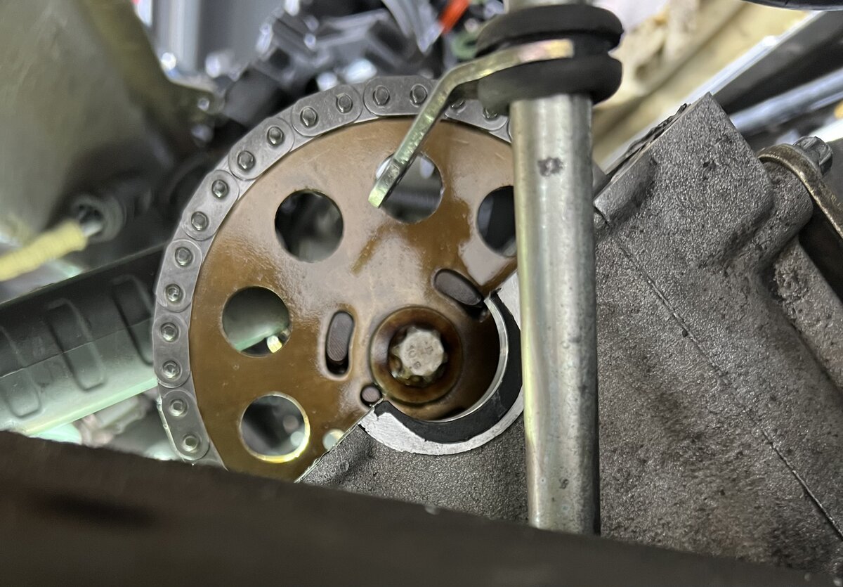 Neue Kette samt Spanner und Gleitschiene rein, neue Düse und einen neuen Ölkettenspanner für die Ölpumpe. OT eingestellt, neu abgedichtet und rein.