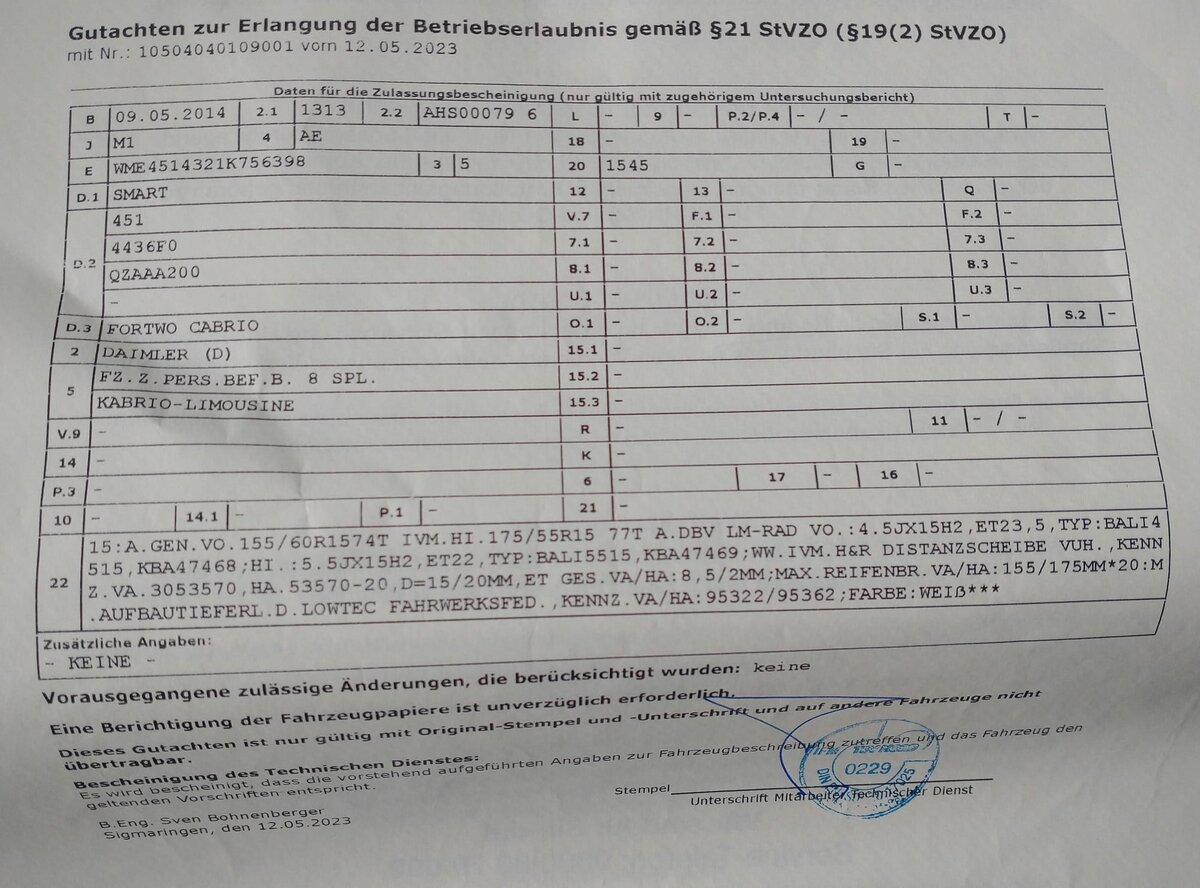 ...d.h. ich bin dann auf diese eine Kombi bzw. Größe beschränkt, weil der Smartie blöderweise damit beim TÜV vorgestellt und begutachtet wurde und deswegen nur die eingetragen sind, ohne Prüfung ob vielleicht sonst noch was möglich wäre?
