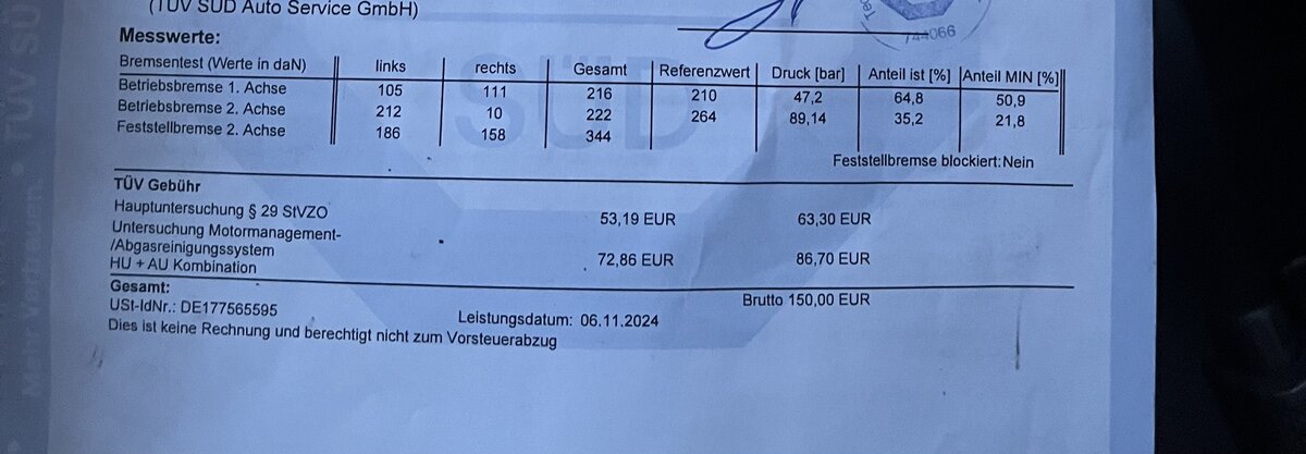 Beide bremsen wurden hinten erneuert trotzdem keine Besserung. Im Anhang der IMG_7622.thumb.jpeg.0e4a65998642810c3b1ad6b3c5cf80bd.jpegTÜV Bericht mit den Werten.