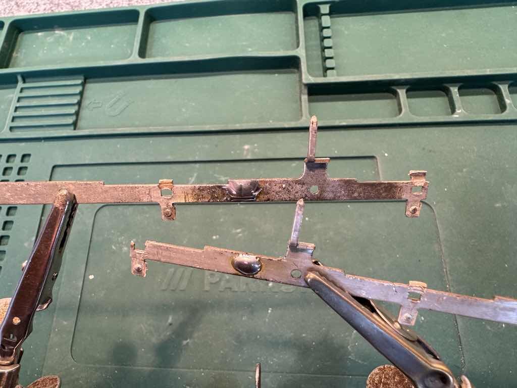 Die Stege an der Lötstelle, die sich in Höhe der Kontaktstifte befindet gründlich von Oxidation entfernen und schön blank schleifen. Anschließend diese Stelle mit einem Lötpunkt versehen, an diesen später das Kabel der LED's angelötet wird. Möglichst extra Flussmittel dazu benutzen.