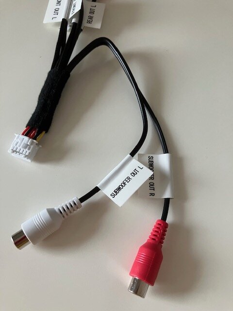 Foto 2: Der Stecker passt ins Radio - von den Cinchkabeln soll ich nur die 2 verwenden, die mit Subwoofer OUT L und R beschriftet sind - alle anderen Tot liegen lassen - ist das OK